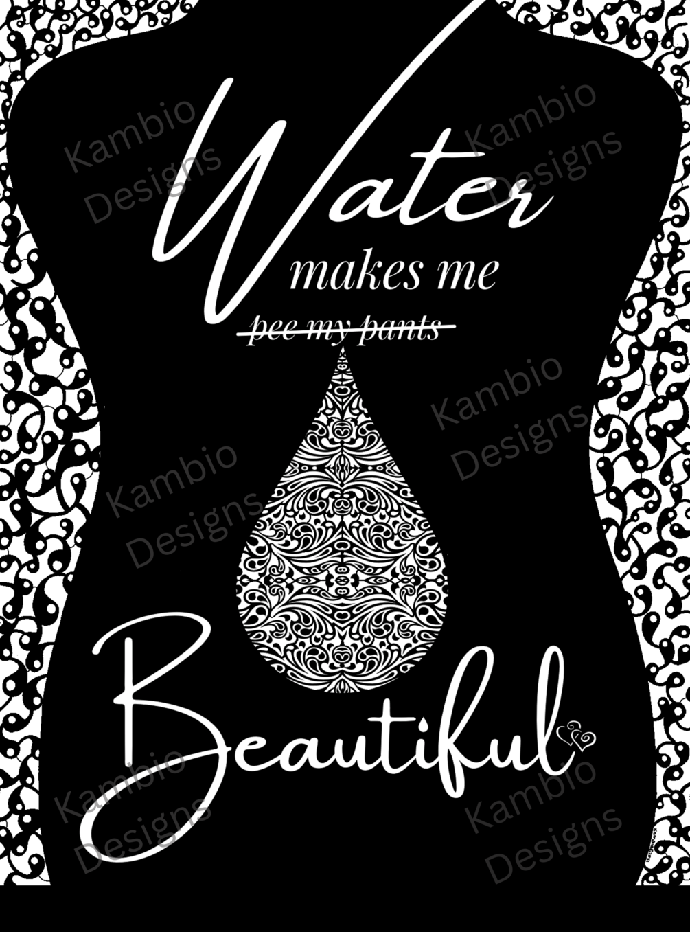 Motivational single instant download printable coloring/colouring page 'Water Makes Me either Pee My Pants OR Beautiful', you choose.